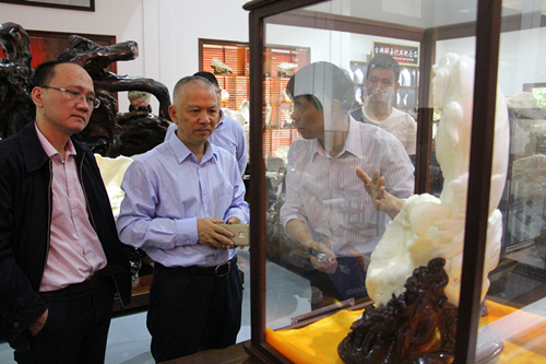 在广东绍河珍珠科技园,吴焕泉副主席听取谢绍河先生关于海洋贝类科普知识的介绍,现场观看“开贝取珠”过程,并考察了“世界砗磲珍珠博览馆”, 馆中汇萃了来自南中国海、太平洋和印度洋等海域,涵盖世界上已经发现的九大砗磲总科的全部品类。绍河珍珠有限公司是一家集珍珠研究、养殖、加工、观光与购物于一体的高新技术企业,在广东、海南、江西以及我国南海海域等地区分别建设海水、淡水珍珠养殖基地,拥有目前国内外珍珠行业中唯一既掌握海水珍珠养殖核心技术,又掌握“淡水有核珍珠”养殖核心技术的高新企业,该司无偿推广贡献出自己的珍珠养殖技术,使农民收益从原来运用“淡水无核珍珠”技术2000元/亩提升到6000元/亩,有效增强了农民依靠科技增产增收致富的能力,带动当地居民就业及相关行业的发展。