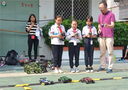 2017年4月26日,金珠小学邀请广州市少年宫模型部资深教练、车辆模型全国冠军指导教练吴坤莅校,为华美校区学生开展了一场科技模型学习体验活动。在吴坤教练运用生动活泼的例子和通俗易懂的语言向孩子们讲解科技模型项目的发展、类别和活动赛事,让孩子们在吮吸每一点知识甘露的同时,体验科学模型的神奇和精彩。体验学习环节,孩子们先后有序地体验了遥控车、动力直线车,固定翼手掷飞机,空阔的操场上回荡着孩子们兴奋地童音,科技模型学习体验活动带给孩子们快乐,让孩子们在科学知识的浸润中更孜孜以求。