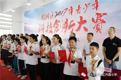 据悉,丹霞小学一贯重视学生的科技教育,积极为学生搭建各色创新、创造平台,在各项青少年科技比赛中喜获佳绩。据不完全统计,2017年以来,该校在2017年度“小小科学家”全国中小学科学教育体验活动总决赛斩获2金1银;在“第32届广东省青少年科技创新大赛”上荣获大赛二等奖,并摘获钟南山创新公益基金会专项奖;在“第17届广东省青少年机器人竞赛”中荣获2金2银2铜;在汕头市首届“小小科学家”少年儿童科学教育体验活动决赛中,获得“一、二、三等奖”及“优秀组织奖”;在“2017年汕头市中小学智能机器人竞赛”中取得2金4银3铜1优秀及“乐博士”创新奖。