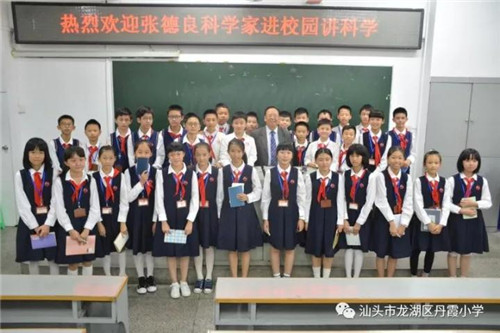 2017年11月16日,丹霞小学教学阶梯教室座无虚席,在众师生的期盼下,中科院研究生院教授、中国科学院力学研究所研究员张德良教授亲临汕头市丹霞小学,为丹霞小学和朝阳小学的学生做了一场以“地球和人类会毁灭吗?——从俄罗斯天体坠落说起”为主题的科普讲座。
