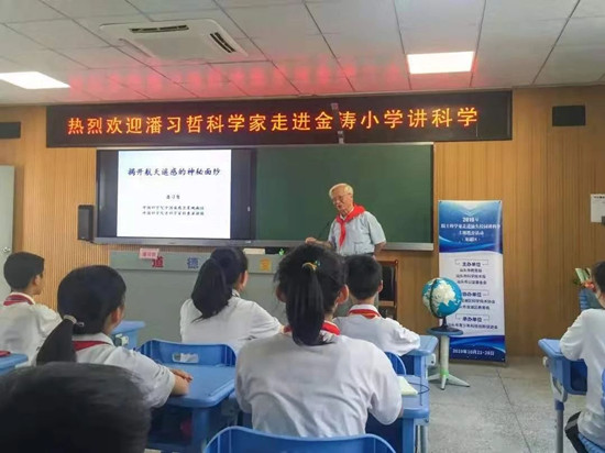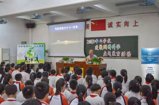 在朝阳小学,中科院老科学家科普演讲团副团长、中科院地质与地球物理研究所研究员徐文耀教授作了《守护地球》的精彩科普报告。徐教授从“幸运的人类、不幸的地球、唯一的地球”三个角度切入,以渊博的地球研究知识,幽默风趣的谈吐,向师生们讲解了太空环境的神奇与奥秘,解读了地球出现生命的条件与要素,启发学生们从身边的小事做起,珍惜资源,珍爱家园,保护地球。
