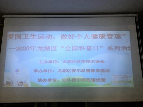 汕头龙湖区麦尔科普教育基地举办“参与爱国卫生运动,做好个人健康管理”科普讲座
