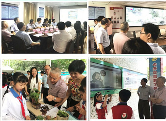 吴焕泉一行先后参观了“科普中国”社区e站的龙湖区新津街道丽东社区和学校e站的金珠小学,实地察看e站落地建设应用情况。