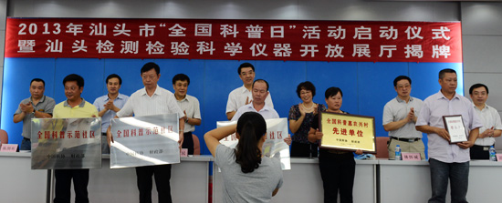 据悉,2013年汕头市“全国科普日”活动启动仪式由市科协、市全民科学素质工作领导小组办公室主办、汕头科技馆协办、市检测检验学会承办。在启动仪式上,对获国家基层科普行动计划项目表彰单位进行授牌,郑健达书记等领导为汕头检测检验科学仪器学会科学仪器开放展厅揭牌,中国广州分析测试中心吴惠勤研究员主讲“地沟油最新检测技术”科普讲座。