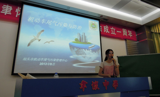 9月16日上午,汕头市科协、市环保局联合在市聿怀中学(大洋校区)举行主题为“保护生态环境 建设美丽汕头”的2013年“全国科普日”科普进校园活动。活动内容有环保警示录摄影展、“汽车尾气排放物危害”和“电子商务”科普讲座、科普知识有奖竞猜和“保护生态环境 建设美丽汕头”签名活动等。
