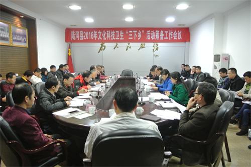 1月20日,2016年广东省文化科技卫生“三下乡”活动筹备工作会议在陆河县政府三楼会议室召开。省、市科协调研组与东莞科技博物馆一行,陆河县委县政府有关领导,县委组织部、宣传部、科技局、教育局等相关部门及河田镇、河口镇、东坑镇、上护镇、螺溪镇等负责同志参加会议。
