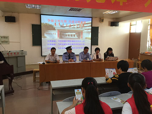活动中,团县委负责人作了《争做文明先锋,共建文明县城》的动员讲话,号召青少年朋友们,携手并肩,同舟共济,共同行动起来,为成功创建省级文明县城贡献青春、智慧和力量;县禁毒大队警官结合县城近几年来发生的真实案例,详细讲解了目前我县禁毒的形势,传授了预防、抵制毒品侵害的方法,告诫大家远离毒品,珍爱生命;学生代表带领全体参会人员作了宣誓承诺,承诺从我做起,当好创建文明县城活动的参与者、践行者、监督者。
