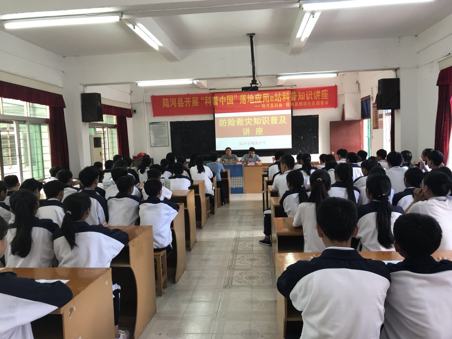 2018年5月11日,螺溪中学多媒体教室,县科协、螺溪社区居委会,开展“科普中国”落地应用e站科普知识讲座现场