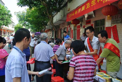 活动现场除免费为居民细心诊断并让居民根据处方免费领取一些日常用药外,还精心准备了丰富的科普大餐,赠送了《预防登革热》、《农村实用技术选编》、《防灾减灾知识宣传手册》、《家庭医生》等200多套科普书籍,为人民群众提供了服务和帮助。医护科普志愿者还义务为群众支招如何预防登革热,并提醒居民,10月底以前还是登革热患病高峰季节,登革热预防最好办法是做好灭蚊、防蚊和清理蚊虫,定期清洁家居环境积水,家庭有用贮水每5-7天更换一次。野外活动时可用检验合格的驱避剂,喷涂在皮肤及衣服上,预防蚊子叮咬。同时还积极发动并号召辖区内居民群众清洁室内外环境卫生,清除各种杂物,整治房前屋后的环境卫生,清理卫生死角,清除家中花瓶、花盆底座积水,倒置阳台的坛坛罐罐,清理蚊子孳生地,大大降低蚊虫密度,从而达到预防登革热病的目的。