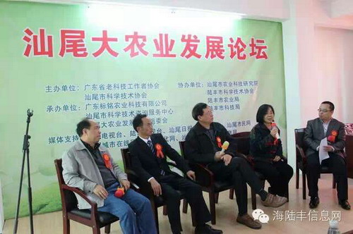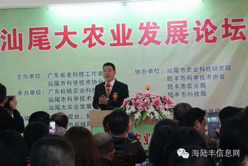 1月29日,由广东省老科协、汕尾市科协主办,汕尾市科技咨询服务中心承办的汕尾大农业发展论坛在陆丰举行。论坛主题为如何充分利用汕尾生态资源,进一步加快农产品研发,大力打造农产品品牌战略,推动汕尾大农业发展。特邀中国科学院广州分院原党组书记兼副院长杨新潮、中国水产科学院南海水产专家研究员李卓佳、南方绿色食品网农艺师陈英钦、汕尾市农业科技研究院院长李宏裕等四位专家作客论坛。汕尾市科协常务副主席范志能出席论坛并作讲话,各县(市、区)科协、有关涉农企业、专业合作社代表100多人参加。