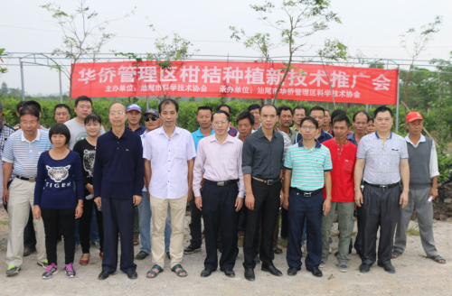 11月18日上午,汕尾市科协在华侨管理区春甜桔种植基地举办柑桔种植新技术推广交流会,汕尾市科协常务副主席范志能同志和华侨管理区相关领导到会指导,柑桔种植户约60人参加。