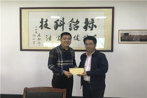 市科协领导慰问老科普志愿者陈锦隆(左)