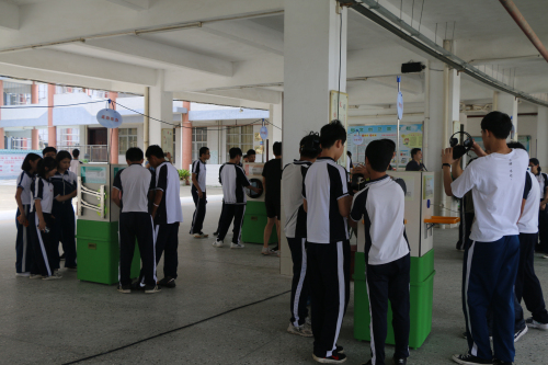 “科普大篷车”为海丰县实验中学师生带来了丰富的车载科普展品和青少年科技创新大赛优秀作品图片,其中有VR体验、健康生活、视觉体验、电磁与材料、机械传动、运动与力六大方面的科普内容,如“槽轮机构”、“意念弯勺”、“太阳能发电”、“空中成像”等科普展品将科学原理、科学现象直观地展现在我们面前。这些展品涵盖了光学、电磁学、声学、力学等知识,让学生们在“试一试”、“看一看”、“想一想”中尽享一场“科技盛宴”。