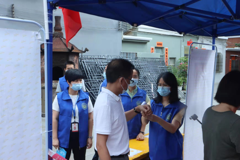 在东涌镇东涌村、东涌镇东家冲、捷胜镇大流村、立新社区(坤盛大厦)、保利金町湾、罗马广场和凤山街道安美社区检测点,都有科普志愿者们穿着或蓝或红马甲的身影,他们积极配合医护人员、村(社区)工作人员,迅速熟悉工作流程,在核酸检测采样区域维持现场秩序,引导居民有序排队、为居民测温、扫码、耐心解答群众提出的各种问题,帮助群众顺利完成采样。