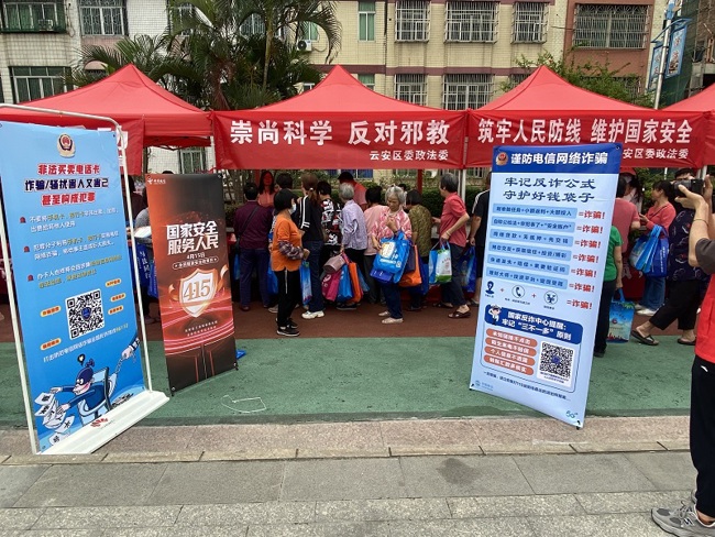 今年4月15日是第九个全民国家安全教育日,为推动总体国家安全观深入人心,提升区人民群众国家安全意识,4月15日,云浮市云安区科协(区工信局)联合区委国安办、区国家保密局等单位在六都镇清风公园开展云安区2024年“4·15”全民国家安全教育日宣传活动。