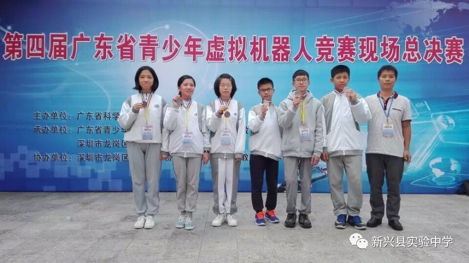 12月2日至3日,第四届广东省青少年虚拟机器人竞赛现场总决赛在深圳市龙岗区梧桐学校举办。云浮市新兴县实验中学的陈卉、伍沅湲、欧晓光、苏泽轩、黎林佳、蒋树瑶6名学生荣获三等奖。
