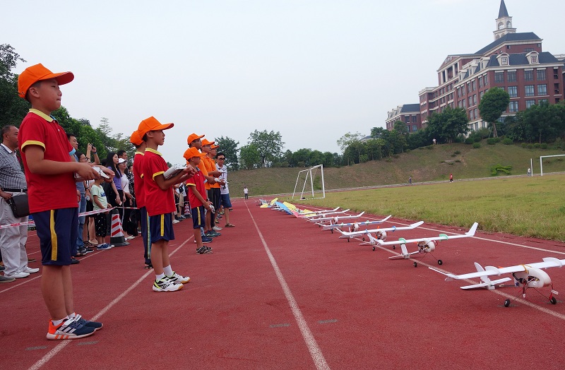 下午,在华立中英文学校足球场还举行了自由飞、遥控纸飞机(拉烟)、纸飞机(30米飘带)、飞机空投等航模飞行表演,晚上则有以科普为主题,涵盖科普教育宣传片、机器人表演、科普剧等内容的文艺晚会。