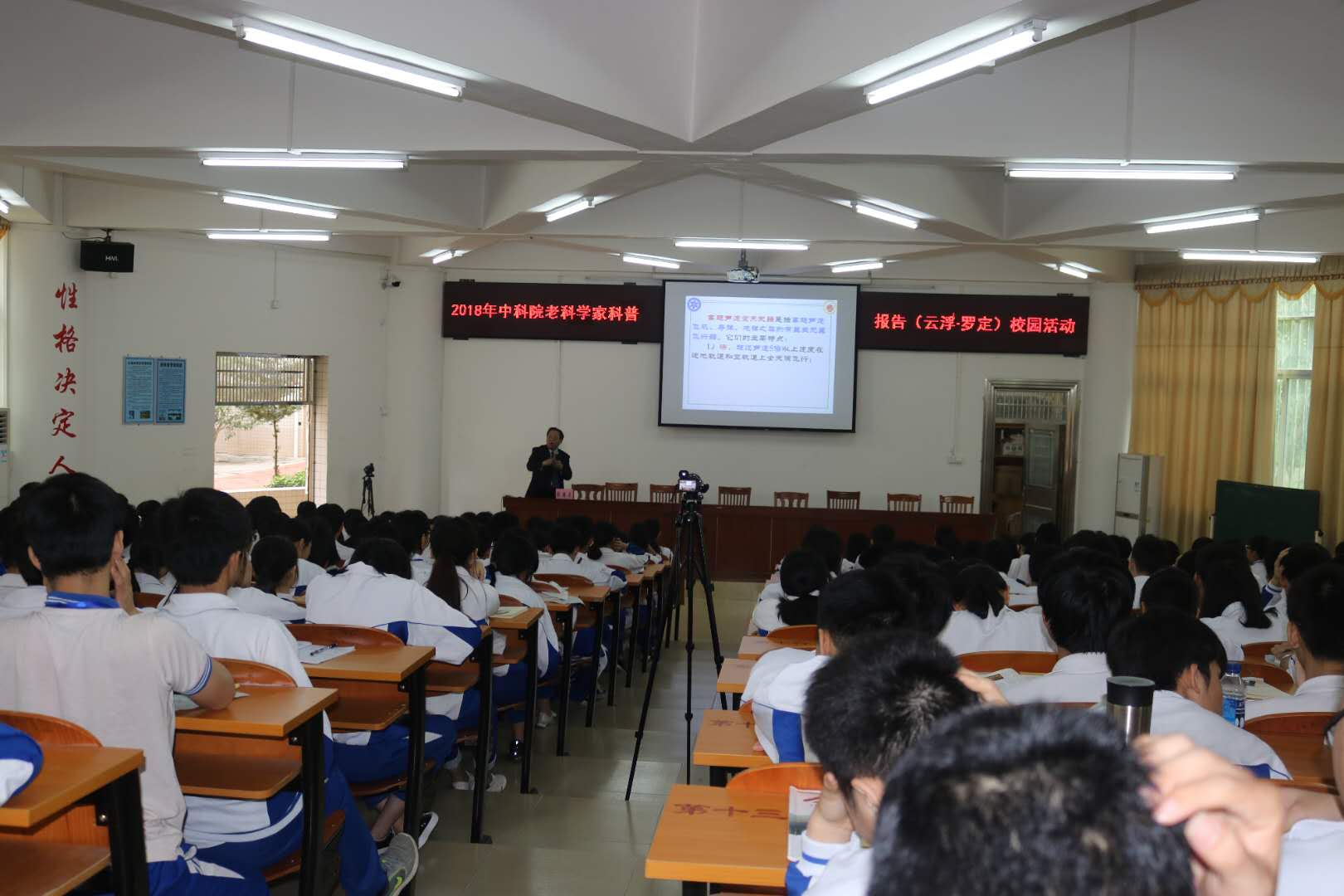 为推动科学思想的广泛传播,营造爱科学、学科学、讲科学、用科学的良好氛围,提高广大青少年的科学文化素质,云浮市科学技术协会、罗定市科学技术协会、罗定市教育局于2018年3月29日至2018年3月31日在罗定市12所中小学校举办“2018年中科院老科学家科普报告(云浮·罗定)校园行活动”,这是继“2017年粤东西北地区科学家科普报告(云浮)校园行活动”后中科院老科学家再次走进云浮开展巡回演讲。