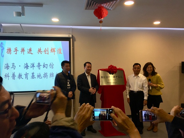 广东省科协党组成员、副主席冯日光(右二)为海马