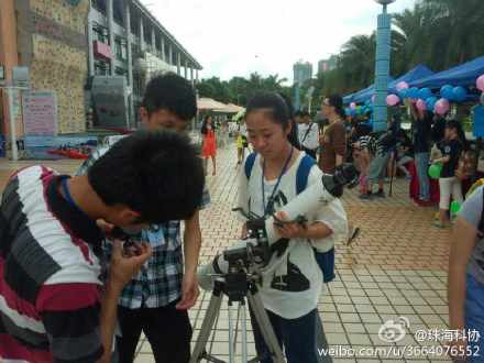 5月17日,由珠海市科协主办,珠海五所高校——中山大学珠海校区、UIC联合国际学院、北师大珠海学院、北理工珠海学院、吉林大学珠海学院的天文社团共同承办的2014珠海路边天文科普活动在市青少年妇女儿童活动中心成功举办。