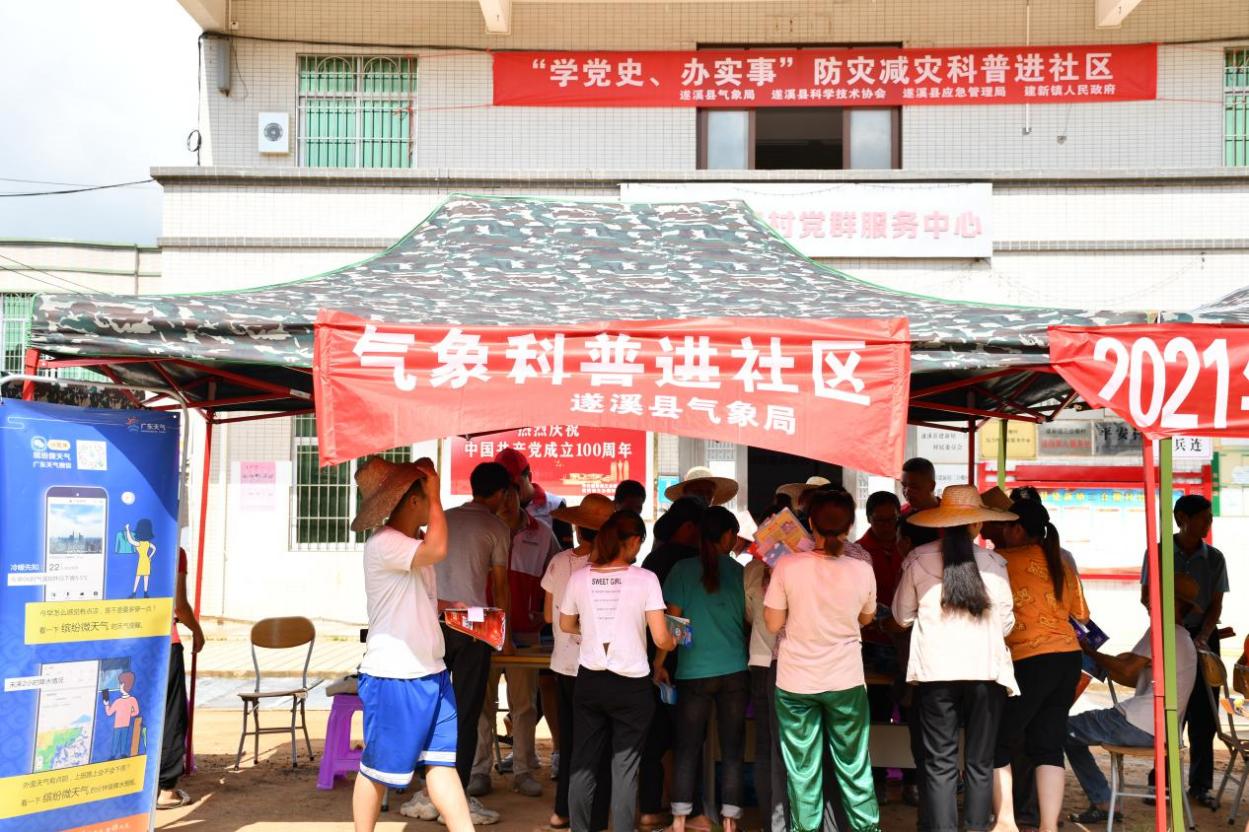为有效提高人民群众的安全防范意识和应对突发自然灾害事件的能力,最大限度减少自然灾害造成的损失和伤害,7月28日,遂溪县气象局、科协、应急管理局、建新镇人民政府、黄略镇人民政府等单位联合举办了“学党史、办实事”防灾减灾应急科普进社区活动。