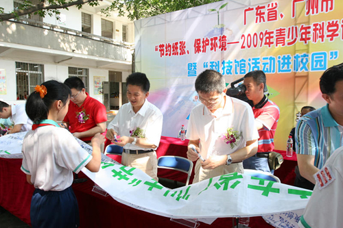 6月5日世界环保日,由广东省教育厅、省科协主办的“节约纸张、保护环境——2009年青少年科学调查体验活动”在广州铁路第五小学启动。省科协副主席吴焕泉同志等领导和嘉宾出席了启动仪式。