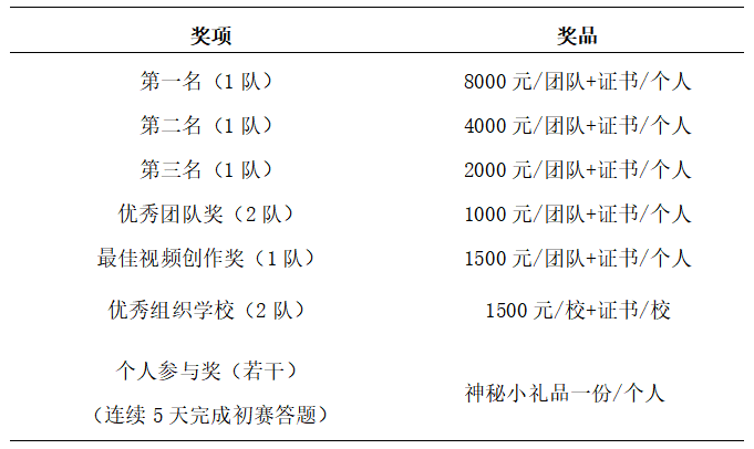 2. 初赛为学生个人参加答题,复赛为满足条件的学校根据初赛成绩挑选5位学生组队参加。