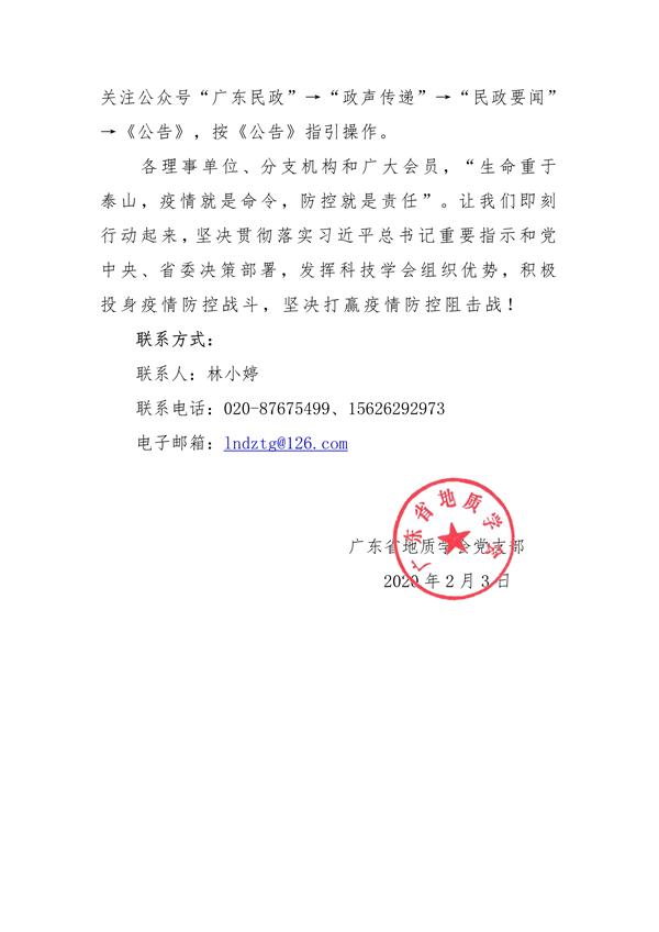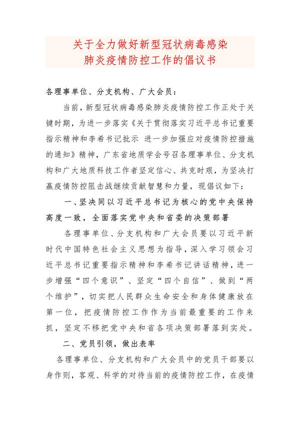 您的位置: 完美体育 >学会之窗>广东省地质学会>学会党建>详细内容 关于全力做好新型冠状病毒感染肺炎疫情防控工作的倡议书 发布时间:2020年03月05日 作者:学会秘书处 来源:广东省地质学会 【字体:小 大】 分享到: