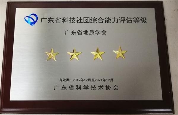 广东省地质学会获颁首批广东省科技社团综合能力评估四星等级牌匾