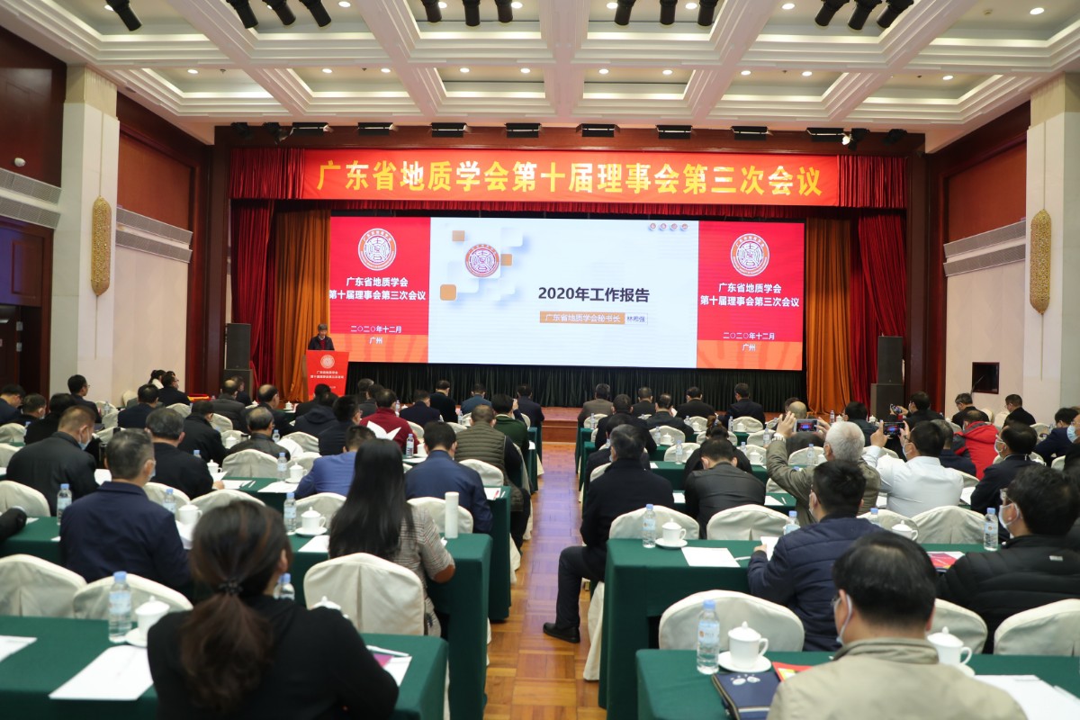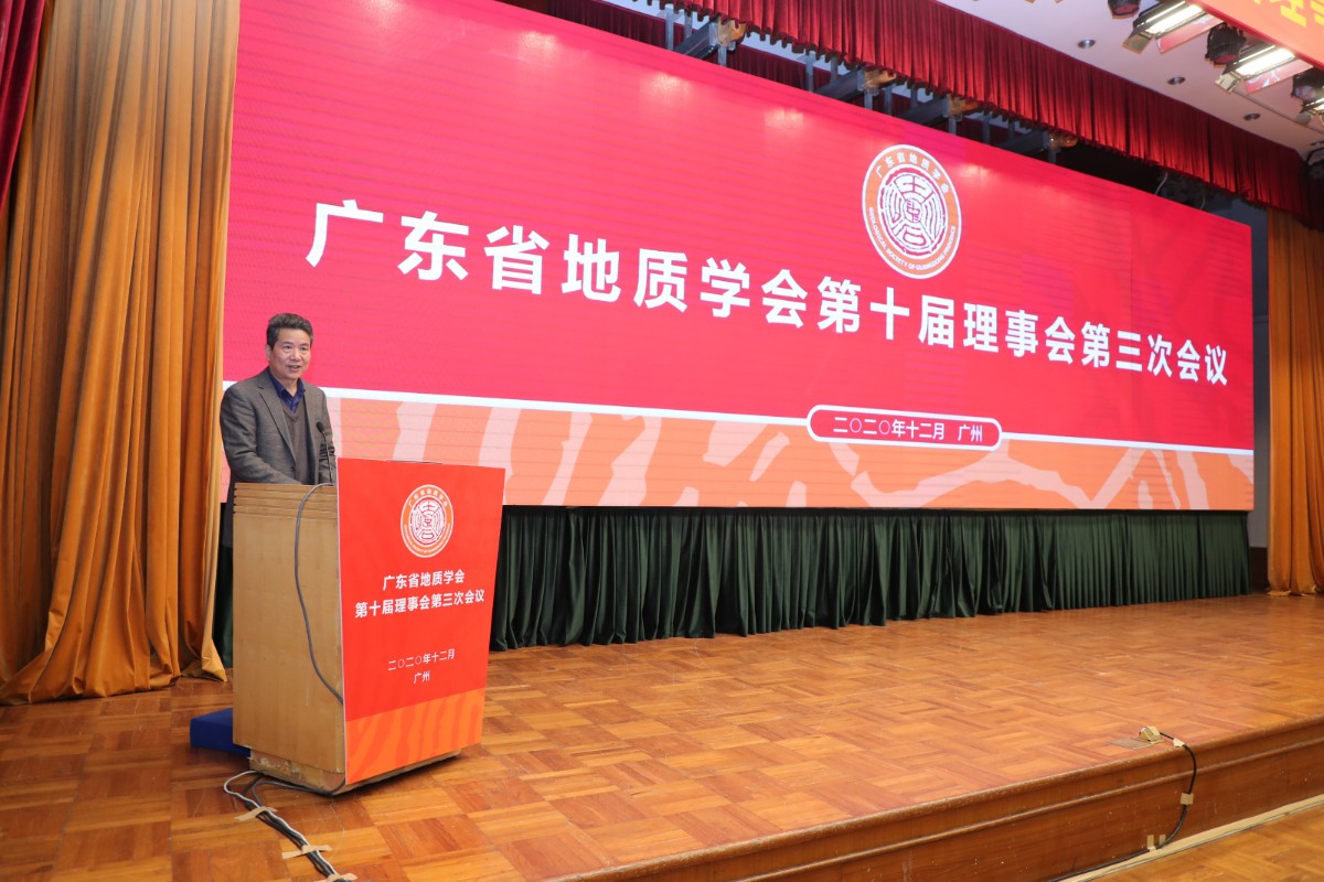 12月23日,广东省地质学会第十届理事会第三次会议在穗隆重举行。2020年,学会坚持以习近平新时代中国特色社会主义思想为指导,持续深入贯彻落实党的十九大精神和十九届二中、三中、四中、五中全会精神,认真学习习近平总书记出席深圳经济特区建立40周年庆祝大会和视察广东重要讲话、重要批示精神,在省科协、省自然资源厅和省地质局的领导和支持下,在中国地质学会的指导下,在各理事单位和广大会员的积极参与和支持下,不忘初心、牢记使命、主动作为、创新发展,努力加强自身建设,积极做好“四个服务”,在学术交流、科学普及、教育培训、科技成果与人才举荐、科技成果评价、地质科学技术奖、对外合作交流、会员服务和自身建设等方面做了大量工作。