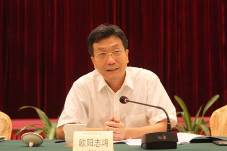 广东省地质学会理事长、广东省地质局局长欧阳志鸿主持会议