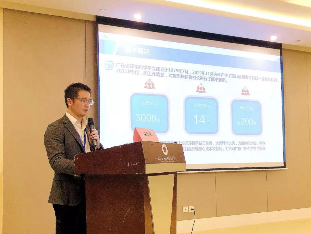 会上,广东省环境科学学会秘书长邹耀代表广东省环境科学学会作了题为“坚持党建引领,科技科普两翼齐飞”的经验交流报告,分别从党建、科技服务、科学普及、团体标准等方面系统介绍了我会的工作开展情况和经验启示。