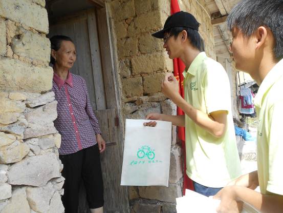 科普服务队还结合“环保、科普”的主题,沿街张贴环保科普海报、挂图,开展《农村农药使用情况》问卷调查,向村民们发放《农村环保科普知识》、《化肥使用环境安全技术导则》、《农药使用环境安全技术导则》等宣传手册。活动累计派发环保科普宣传册500份,绿色行动小手册50余本,张贴海报90余份,赠送环保袋150余个。图为入户环保问卷调研。