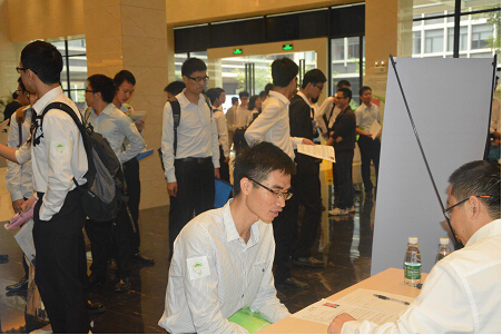 比赛当天,还同时举办了华南新材料创新园材料类专场招聘会和企业参观活动。本次专场招聘会共邀请了43家材料类企业参会,吸引了来自华南理工大学、暨南大学、广东工业大学共350余名应届毕业生前来应聘,不少招聘摊位前排起了长龙,现场气氛火热。同时,参赛选手和部分同学参观了金发科技、华新园等园区材料类企业。