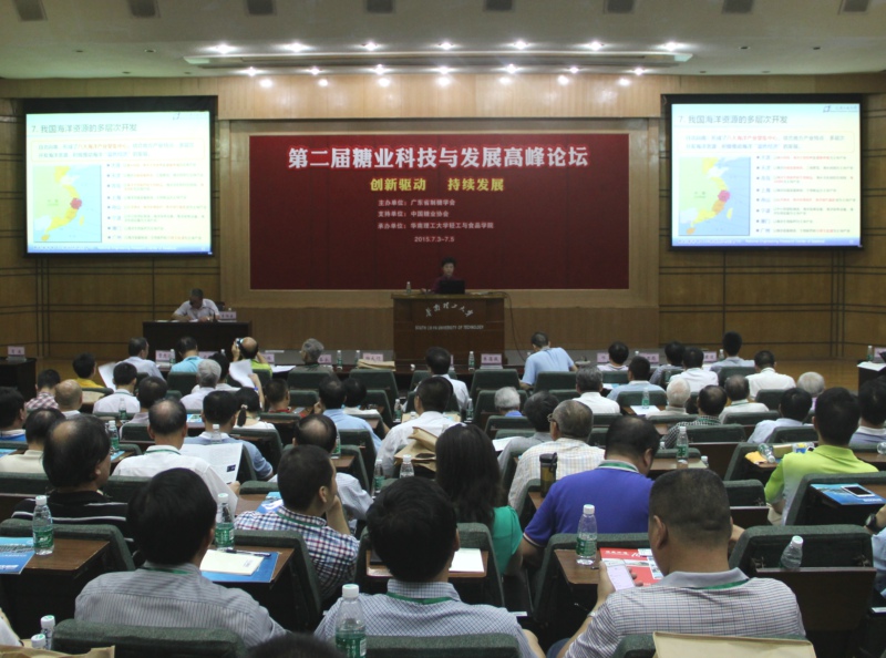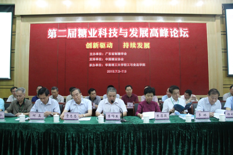 2015年7月4-5日,由广东省制糖学会主办,华南理工大学轻工与食品学院承办的“第二届糖业科技与发展高峰论坛”在华南理工大学五山校区隆重举行。参加本次论坛有中国工程院院士朱蓓薇、中国糖业协会理事长贾志忍、广东省科协党组书记何真、东莞理工学院校长李琳、广东轻工业协会理事长杨大行,广西、广东、云南糖业协会(学会)负责人、全国大型制糖企业及科研院所负责人、糖业界技术专家、教授和技术工作者、国內外著名制糖设备制造商代表等200余人。